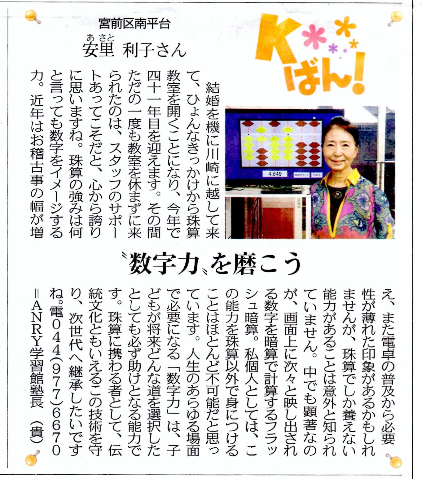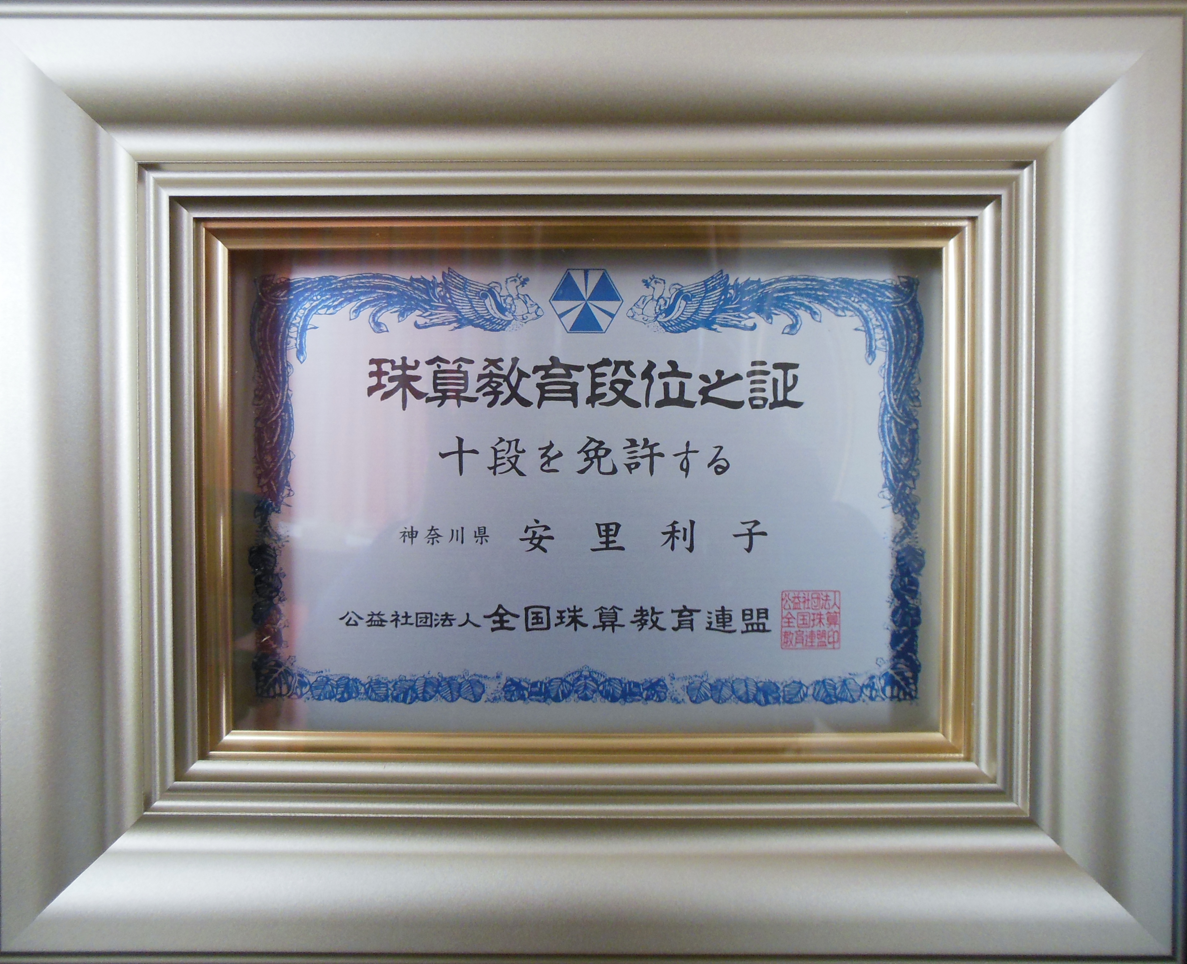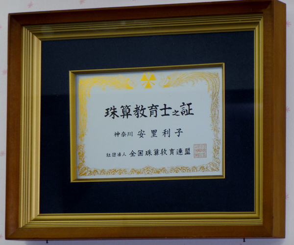 335回 珠算検定 五段合格 合格に対し神奈川県教育長賞受賞 |