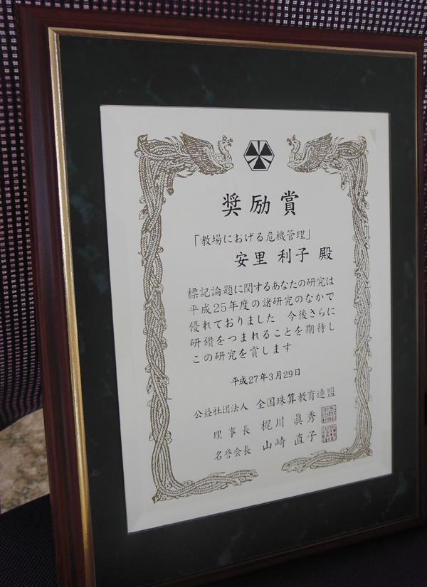 第61回全国珠算研究集会(鹿児島)において年間の論文審査の結果、研究奨励賞を頂きました