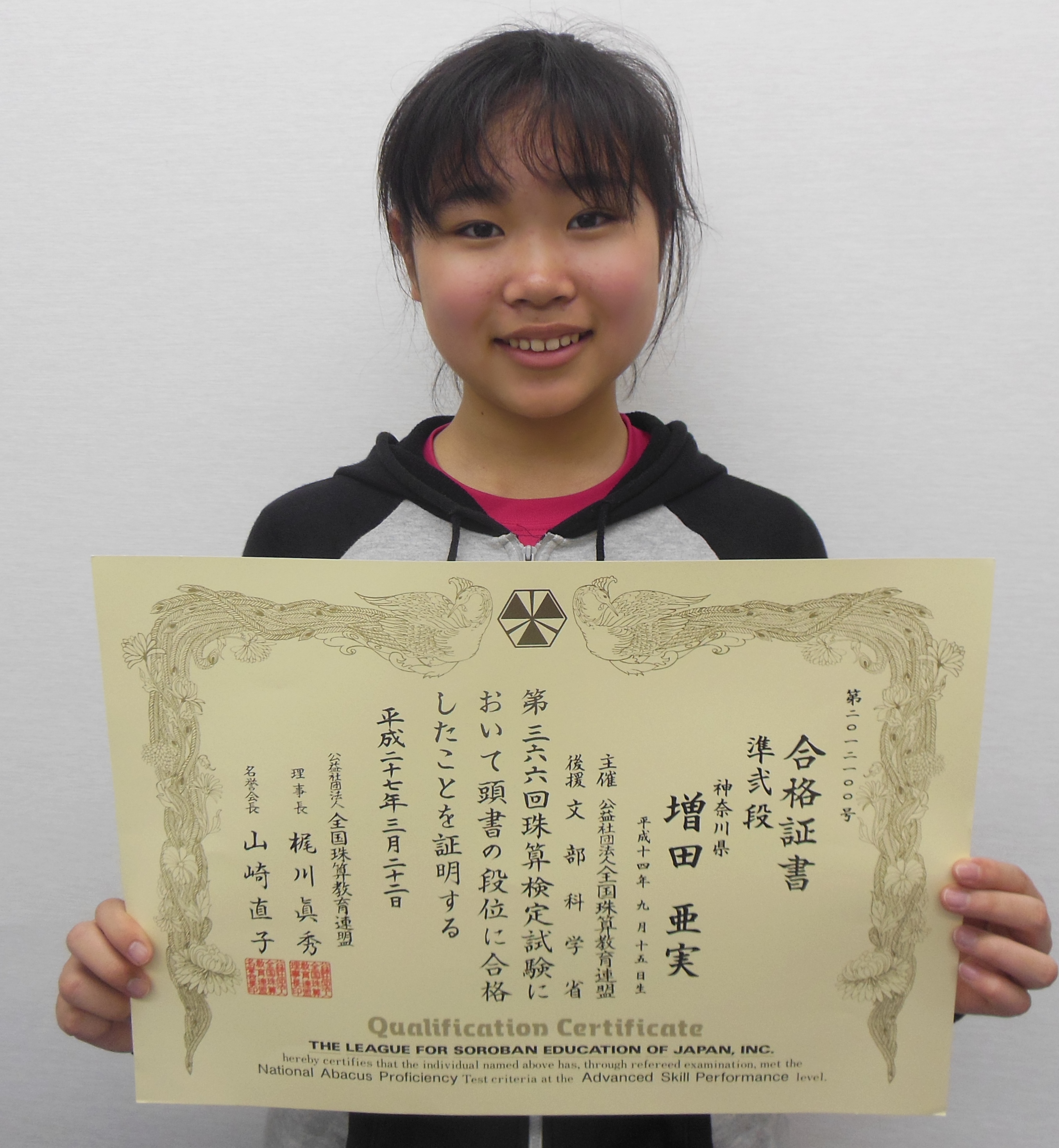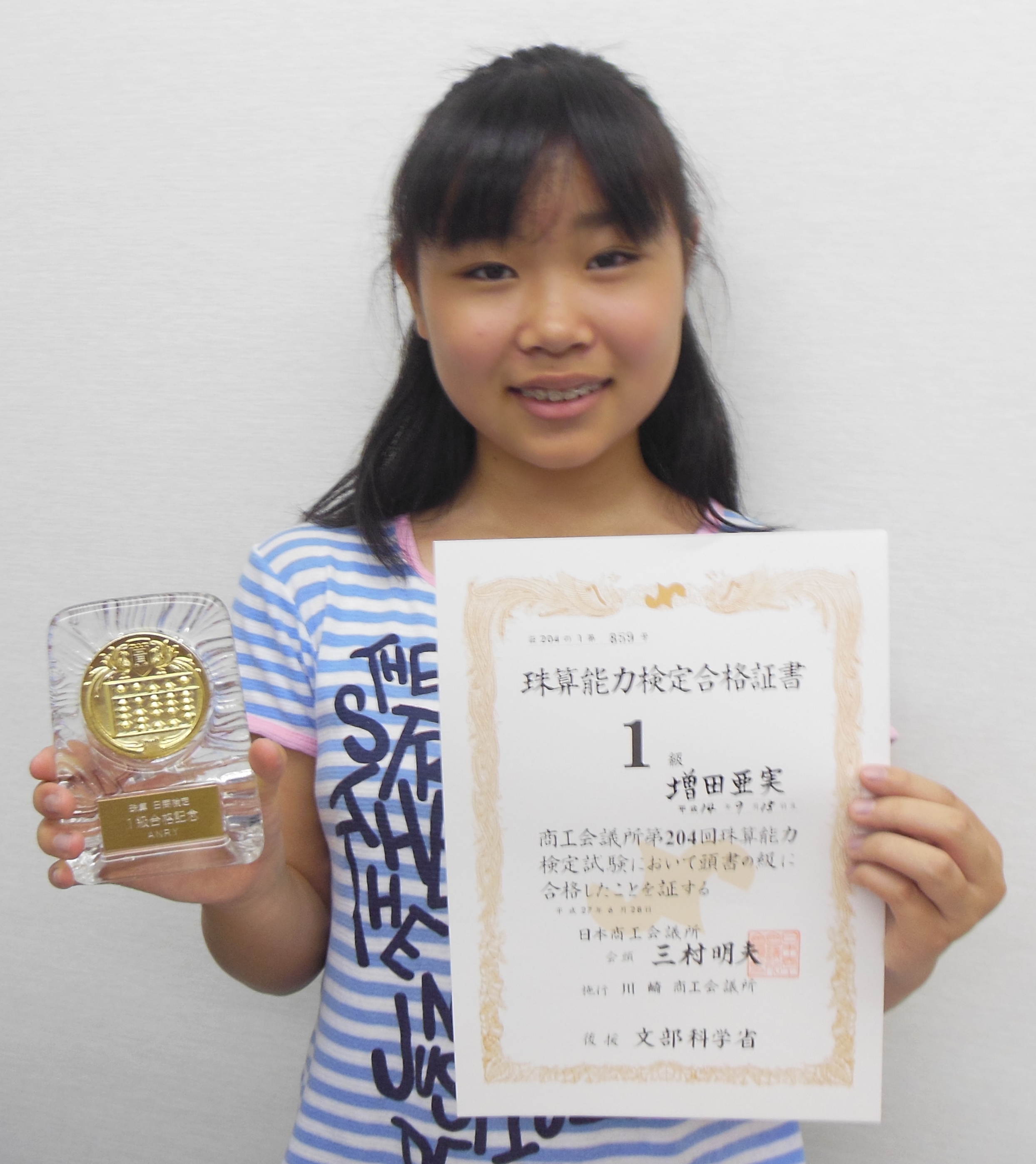増田亜実さん 206回 暗算検定 204回 珠算検定 |