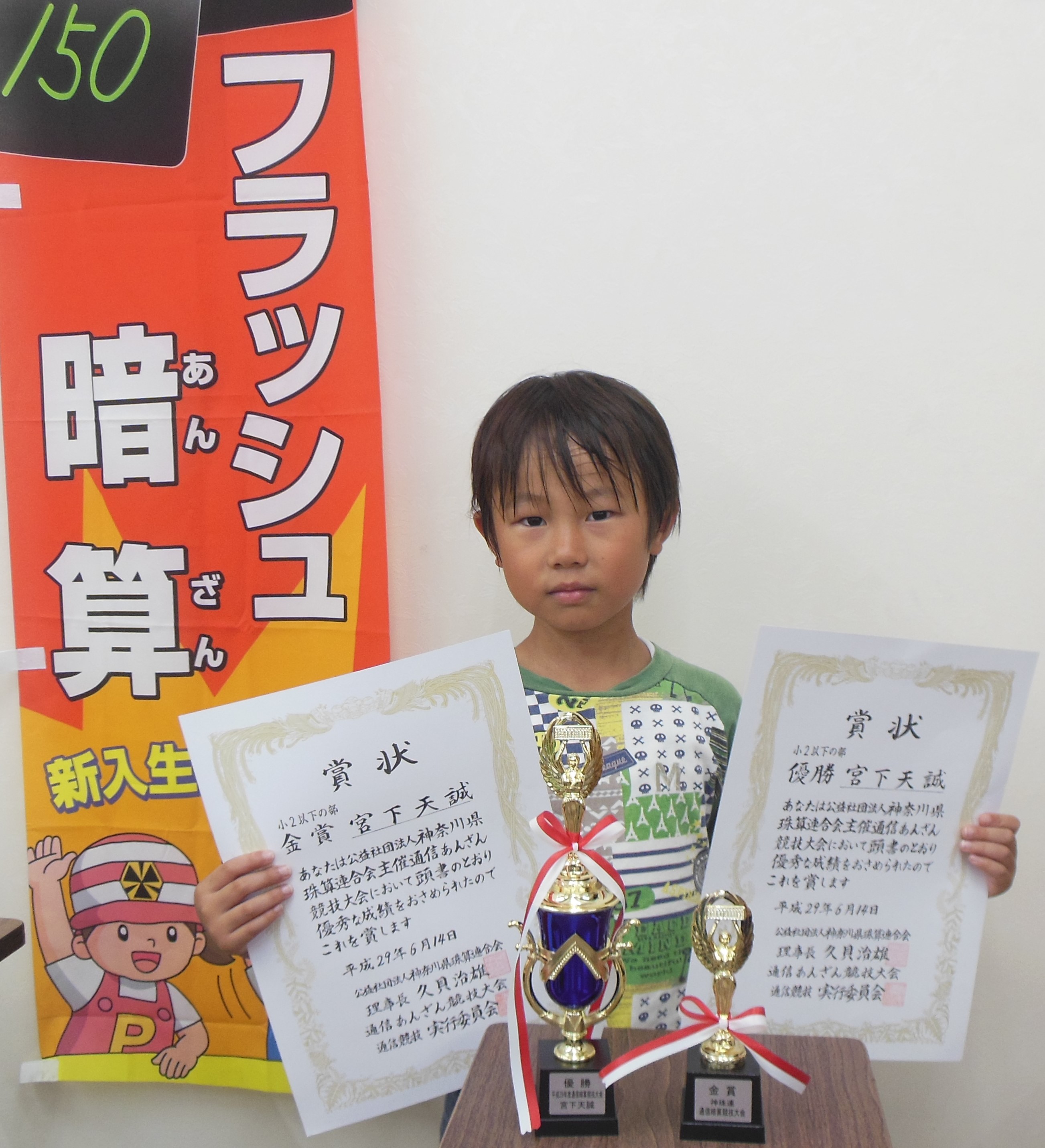 フラッシュ暗算 2年生以下の部 2位 横山宗史 3位 宮下天誠 橋本 翔