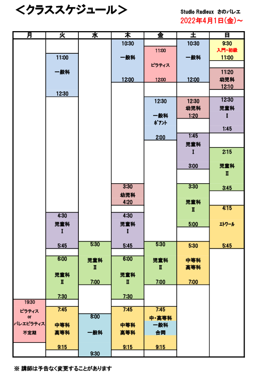 3歳から一般まで、各年齢・経験に応じたクラス多数。