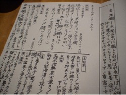 メニュー・・・お通しは菜の花ととびっ子の辛し和え。