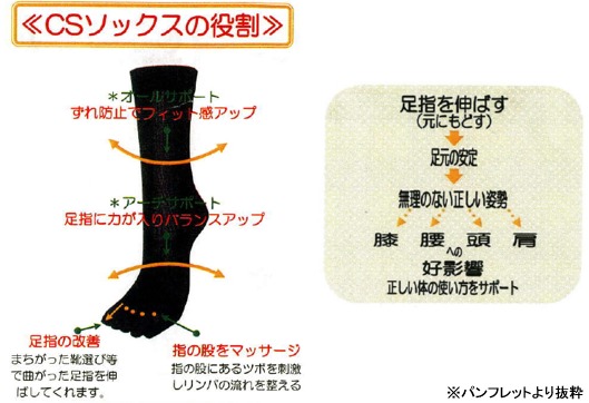 このソックスはその縮んだ足指をしっかり離し、伸ばすことを目的として作られています。