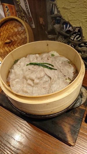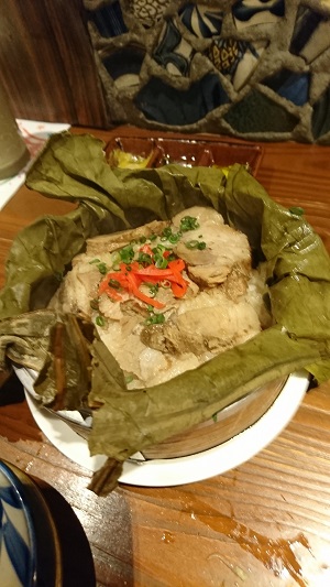 ●やんばるしまぶたあぐーバラ肉の瞬間泡盛蒸し