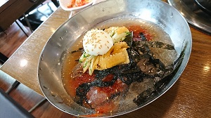 やっぱり暑い日は 水冷麺&マンドウ(蒸したての大きい餃子)