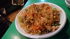 春雨と野菜の炒め物をのせたご飯。 写真ではわかりませんが下にご飯がたっぷり。