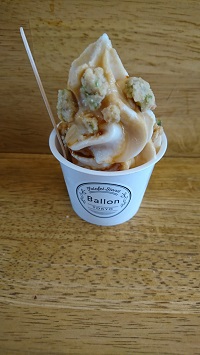 ここのおすすめで、豆乳と甘酒がベースらしい。 さっぱりとしたアイスなので、トッピングするとさらにおいしい。
