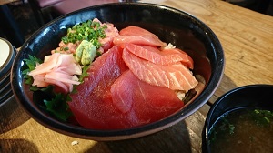 本マグロが入るとやはり割高ですが(今回の本マグロ入りの丼などは 2500~3000円くらい)