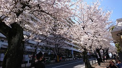 桜が8分咲きくらいの宮崎台駅前・桜坂 (午前中に撮ったので影があってすみません!)3月上旬です。