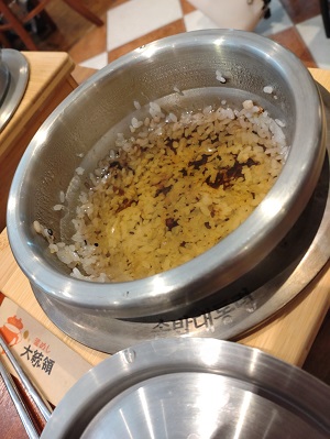 ご飯を全部よそってお湯をいれておこげスープ(ヌルンジ)にします。 一つで2度おいしい感じです。