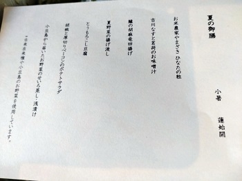 【夏の御膳】毎週すこしずつ内容が変わりながら、