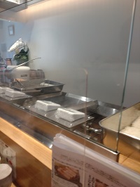 ちょうど私の目の前で店主の方がオーダーの入ったとんかつをまずお肉を切って 衣を付けはじめました。