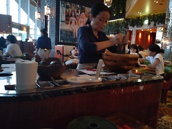 テーブルで好きなアボカドをえらび、それでワゴンの上で調理して、