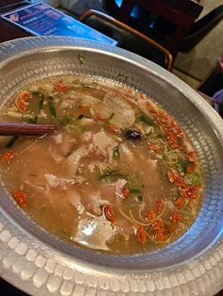 最初一口目で「うわっ、おいしい」と出ちゃいました。 クコの実などもはいっていて、まさに薬膳料理ですね。