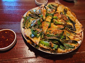 入ルのニラチヂミ このチヂミは、パリッパリしてニラがぎっしり。